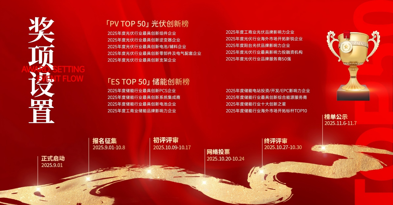 “「PV TOP 50」&「ES TOP 50」2025光儲(chǔ)創(chuàng)新榜”評(píng)選活動(dòng)正式啟幕!